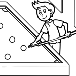 Billard wird auf einem Billardtisch gespielt. Dabei versucht man, mit einem speziellen Queue (einem langen, schmalen Stab) die Billardkugeln auf dem Tisch zu stoßen und sie in die dafür vorgesehenen Taschen zu versenken. Es gibt verschiedene Varianten des Spiels, wie zum Beispiel Pool, Snooker und Karambolage, die sich in den Regeln und dem Aufbau des Tisches unterscheiden. Billard erfordert Geschick, Präzision und strategisches Denken und wird sowohl von Hobby- als auch von Profispielern auf der ganzen Welt gespielt. Es gibt spezielle Billardqueues, die leichter und kürzer sind und an die Bedürfnisse von Kindern angepasst wurden. Diese werden oft als „Junior Queues“ bezeichnet und sind ideal für den Einstieg in den Billardsport für Kinder. Und deswegen Ausmalbilder über Billard.