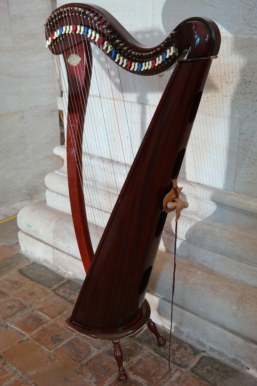 Harfe | Saiteninstrument | Ein großes Zupfinstrument mit einer charakteristischen dreieckigen Form und einem vollen, sanften Klang. | - |  |