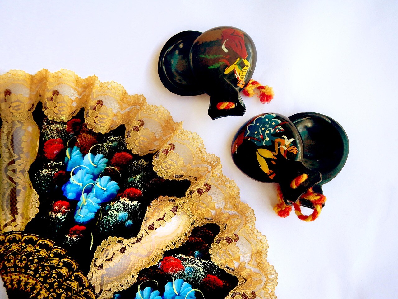 Kastagnetten | Schlaginstrument | Ein Paar gegeneinander geschlagener Holz- oder Schaleninstrumente, die oft in Flamenco-Musik verwendet werden. | - |  |