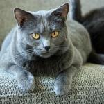 Chartreux | Die Chartreux hat ein mittellanges, festes Fell und ein ruhiges Wesen. Sie sind sehr intelligent und haben eine tiefen Bindung zu ihren Besitzern. |  |