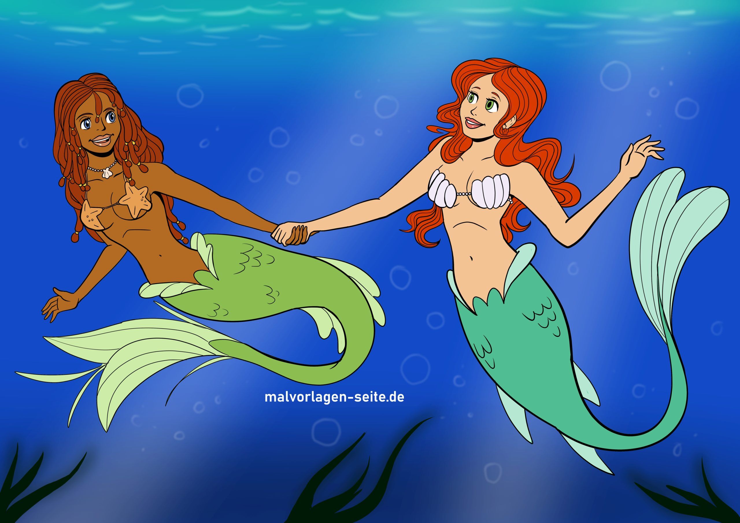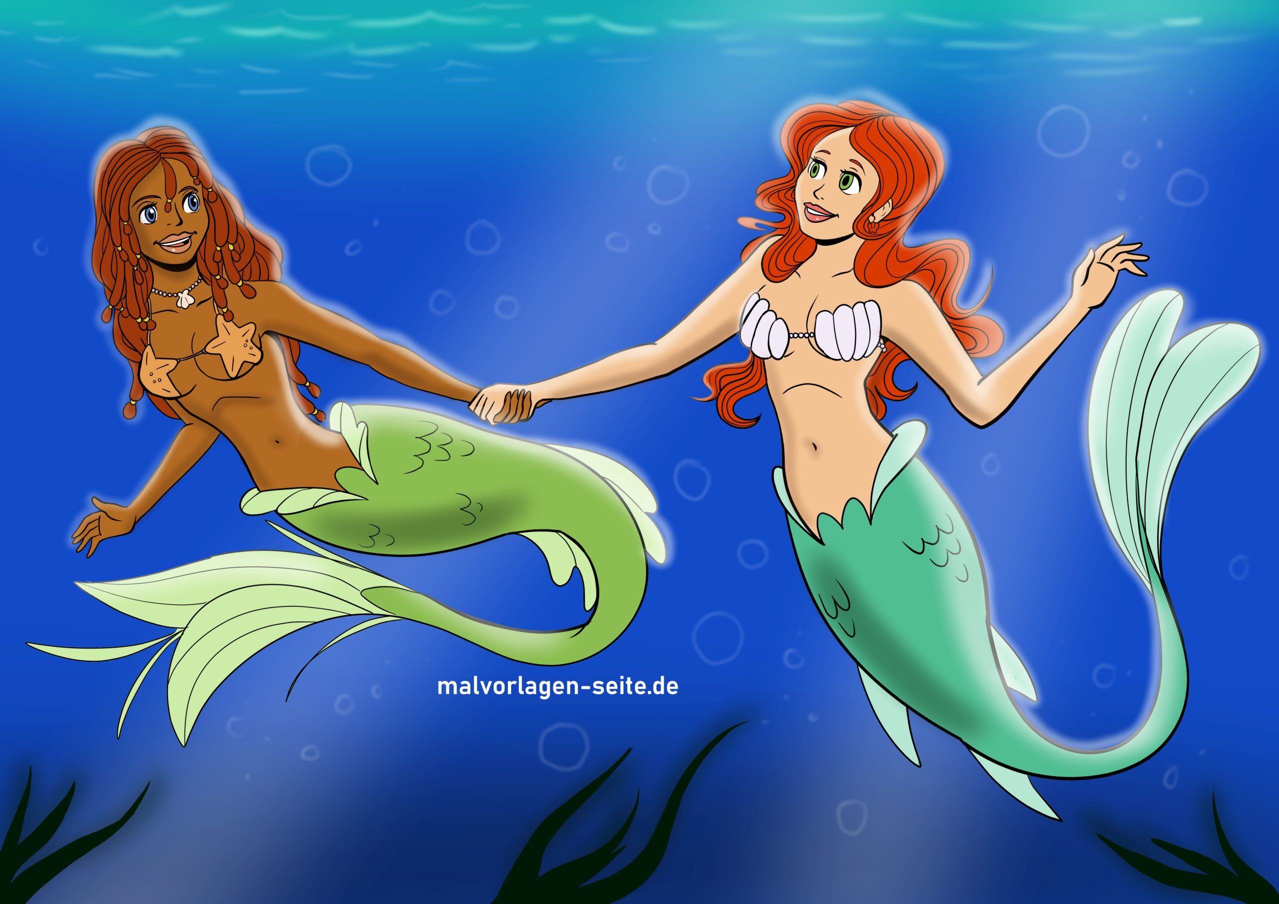 Fertige Vorlage hellhäutige und dunkelhäutige Meerjungfrau