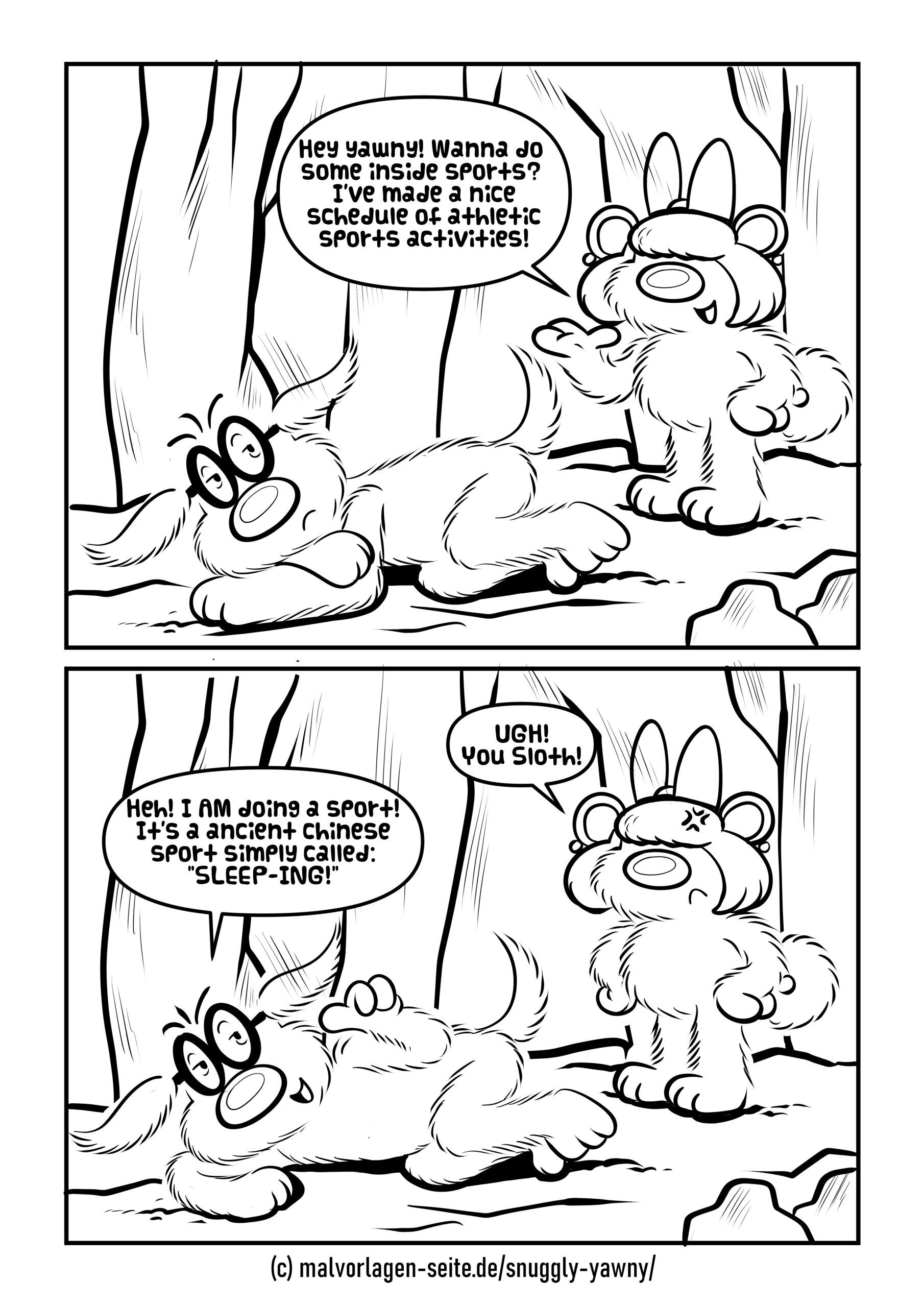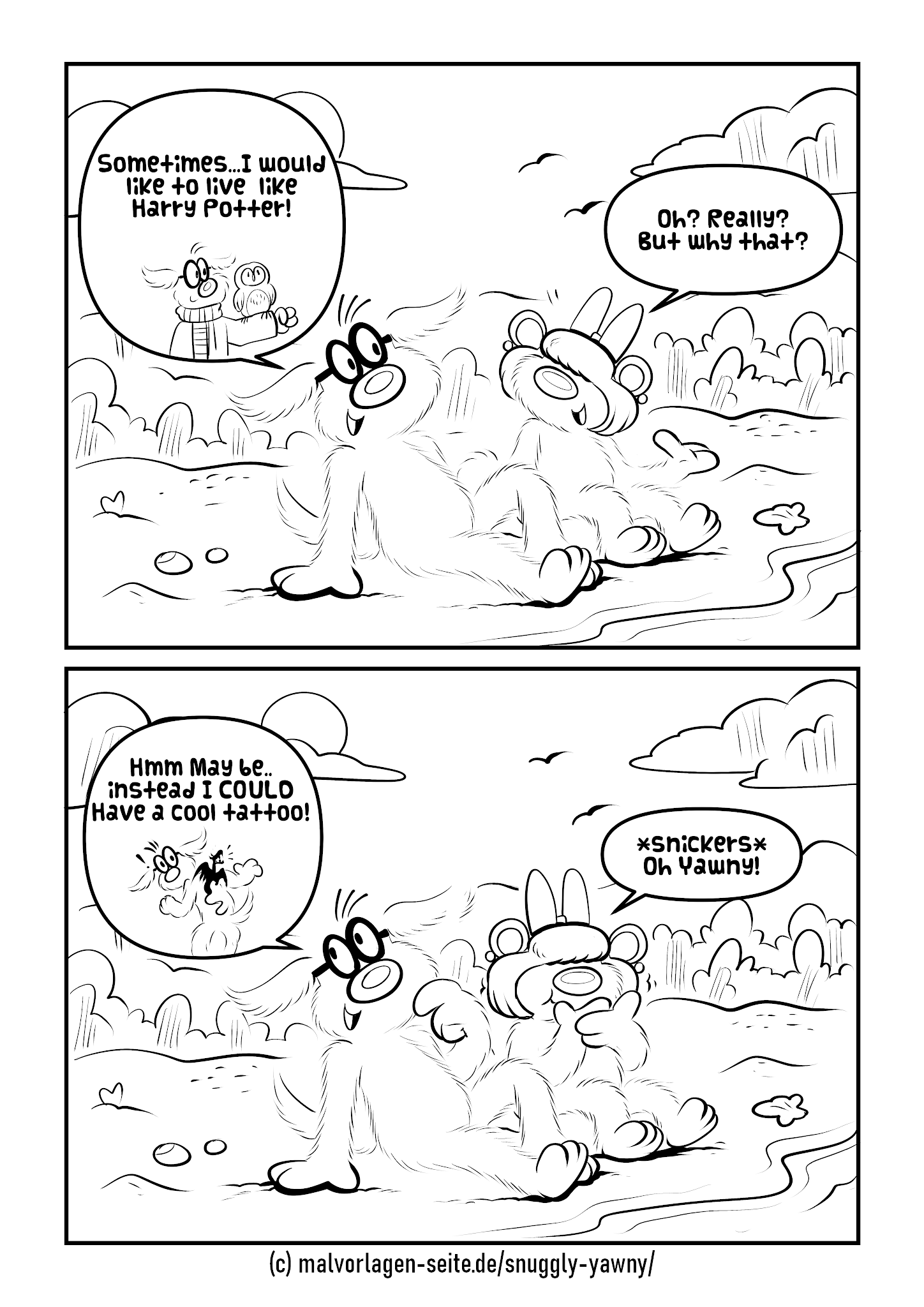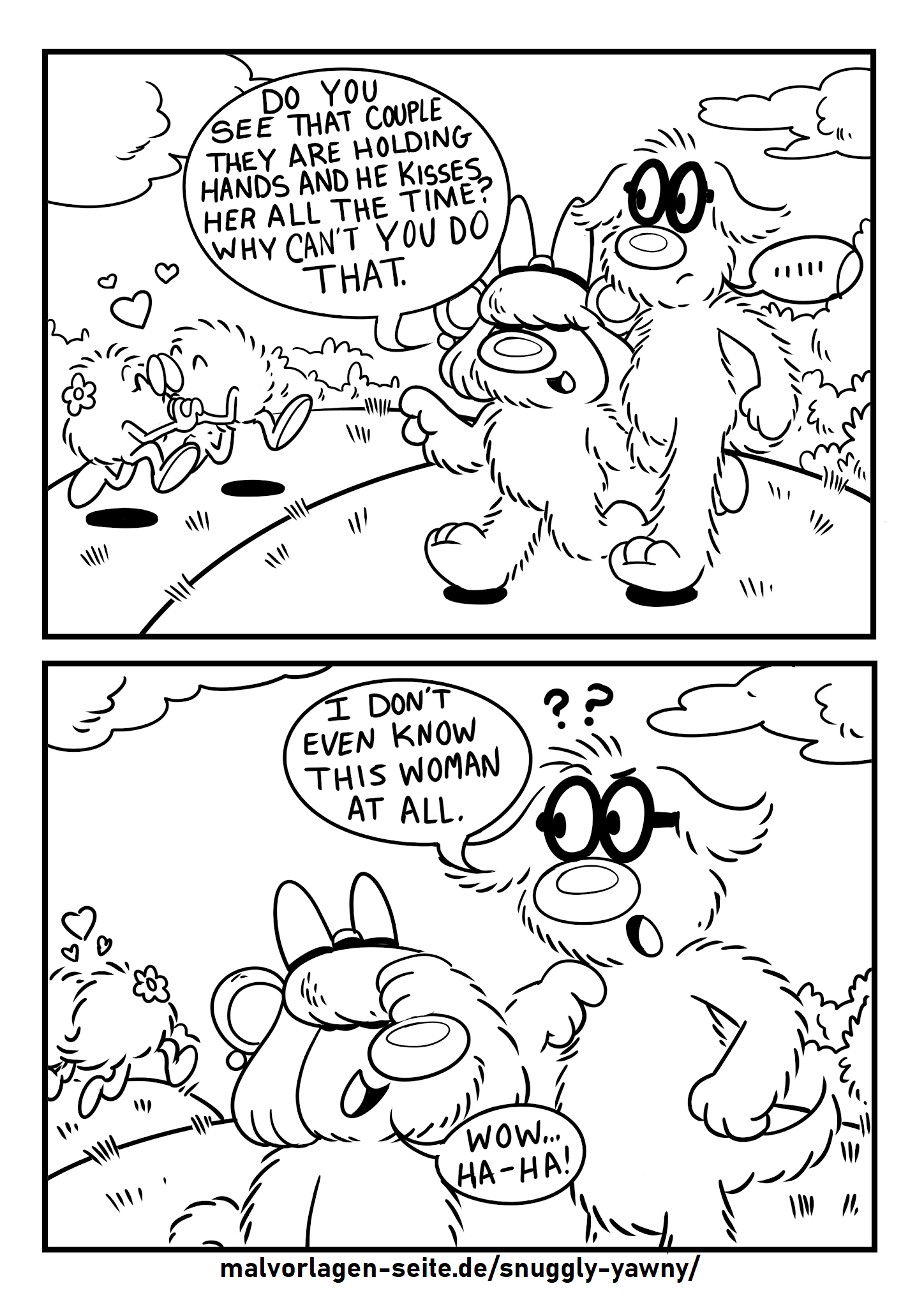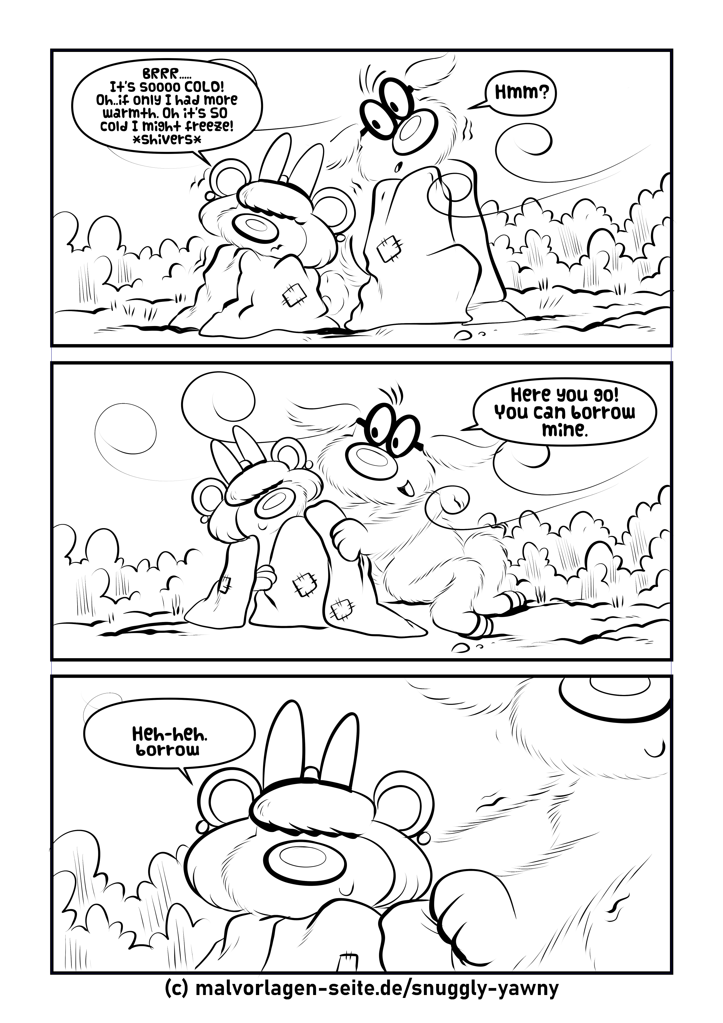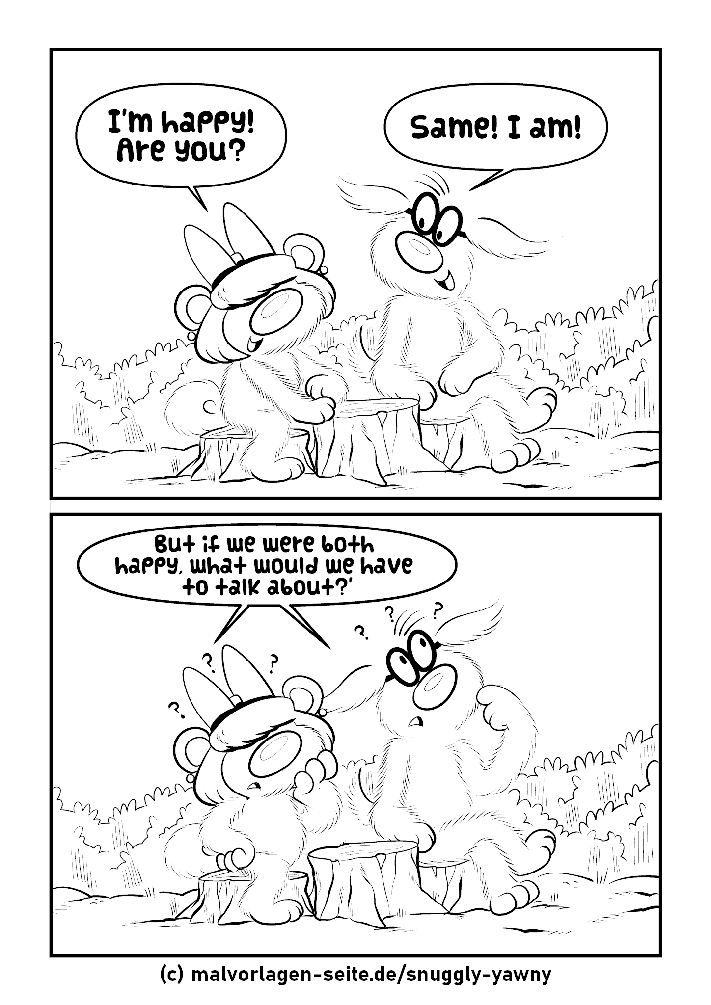 Auf unserer Seite findest du tolle Zeichnungen von Snuggly und Yawny, die die lustigsten Momente ihrer Abenteuer festhalten! Wir laden dich herzlich ein, sie herunterzuladen und mit ihnen zu lachen, zu kuscheln und die kleinen Freuden des Lebens zu feiern. Denn bei Snuggly und Yawny ist immer Platz für ein wenig mehr Liebe, Spaß und vor allem, für die besten Freunde!